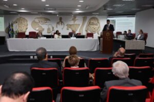 Logo no início, o desembargador propôs aos colegas uma reflexão ampla sobre o futuro da jurisdição trabalhista, destacando que “a responsabilidade de falar sobre precedentes diante de presidentes e corregedores é ainda maior, pois estamos falando com aqueles que dão forma institucional ao que decidimos todos os dias”.