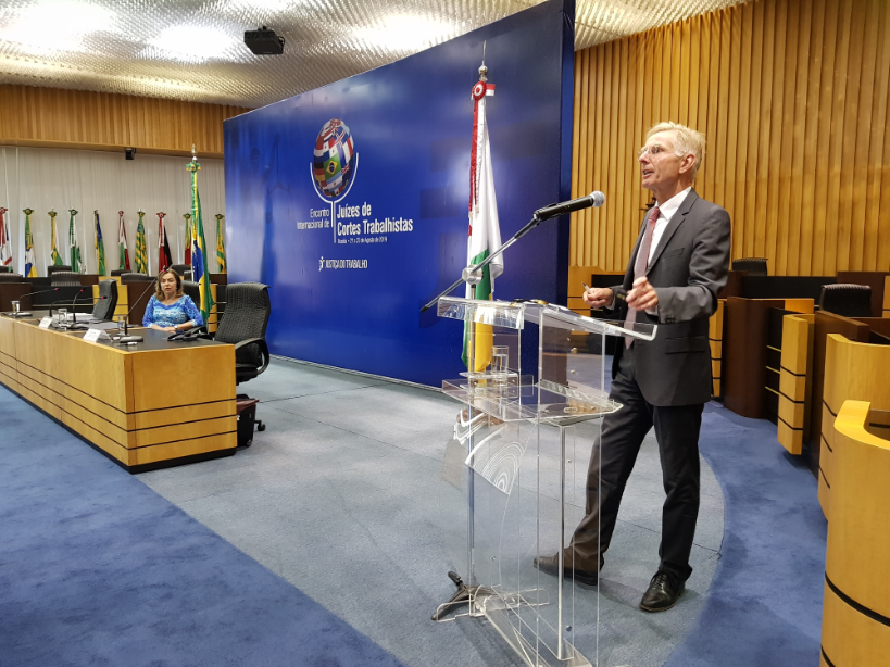 O panorama foi apresentado a partir da experiência do palestrante na Associação Europeia de Juízes de Cortes Trabalhistas, entidade privada a qual integra e que reúne magistrados de mais de 27 países do continente.
