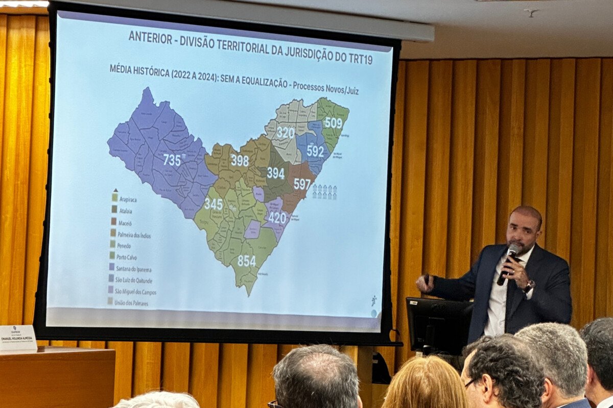 O juiz-auxiliar da Presidência do Tribunal Regional do Trabalho da 19ª Região (AL), Emanuel Holanda Almeida, apresentou os resultados do Projeto Equaliza, iniciativa voltada à redistribuição equilibrada da carga de trabalho entre magistrados e unidades judiciárias. A palestra ocorreu na sede do Tribunal Superior do Trabalho (TST) que reuniu representantes de diversos regionais da Justiça do Trabalho.